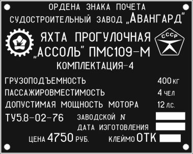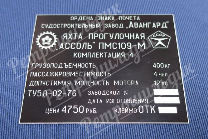 для моторных лодок "АССОЛЬ ПМС109-М"