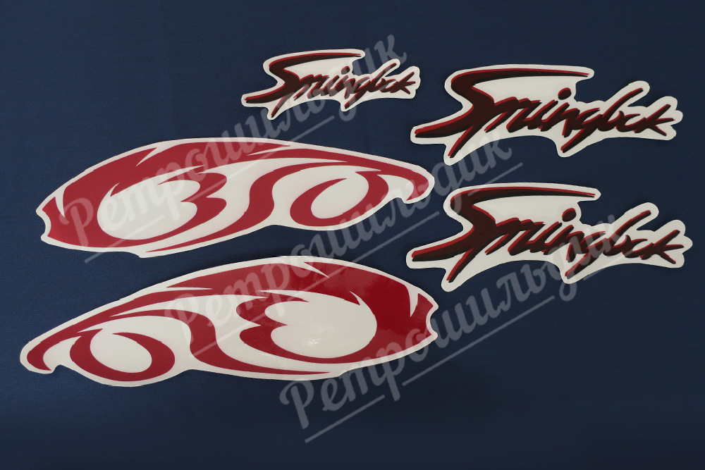 В комплект входят пять наклеек: две на бак, две на бардачки, одна - на козырек фары.